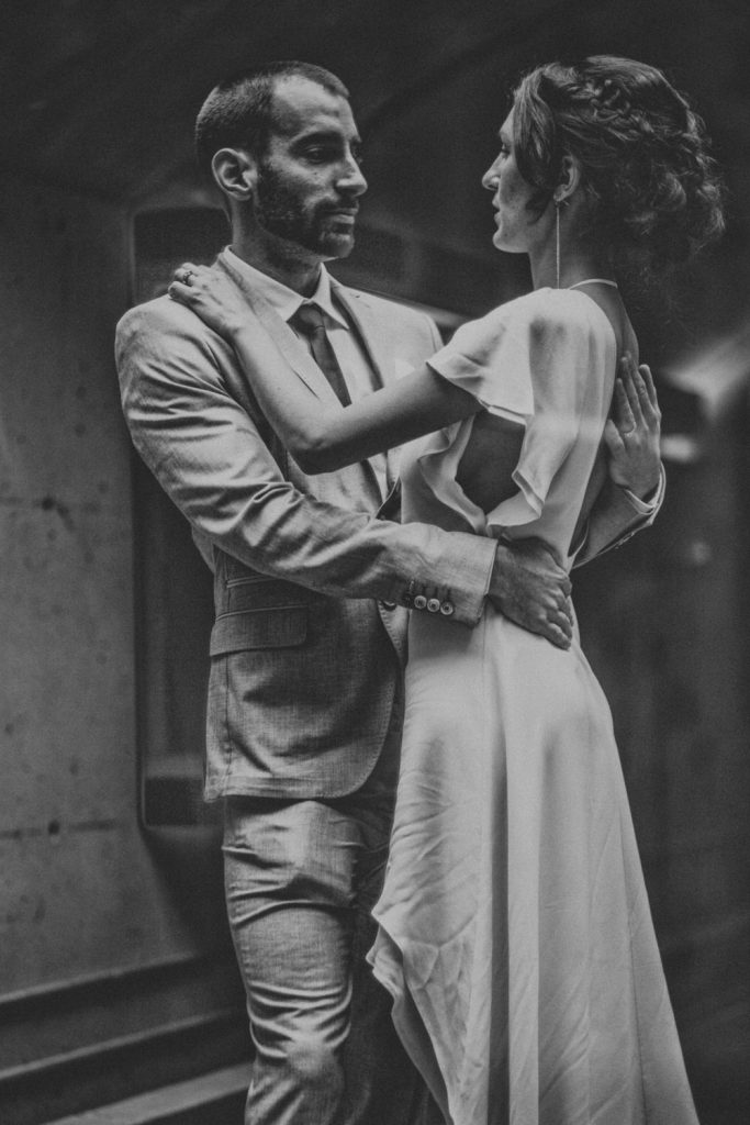 Dans l'intérêt de bien raconter votre histoire, j'adopte une approche documentaire : la majorité du temps, je reste discret et à l'abri des projecteurs. Dans ma couverture de l'événement, j'inclus également les éléments de la "trame de fond" de votre journée : les détails de la décoration, de l'arrière scène et des lieux. Et pour la session de photo des mariés, dans la magie du moment, on crée ensemble des photos significatives, authentiques, à l'image de votre couple et de votre amour.